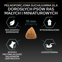 Pełnoporcjowa karma dla dorosłych psów ras małych i miniaturowych o wrażliwym przewodzie pokarmowym. Purina Pro Plan z formułą OPTIDIGEST zawiera łatwostrawne składniki, ułatwiające proces trawienia twojego psa. Dodatkowo składnik bentonitu w karmie dla małych ras psów wiąże nadmiar wody i pomaga poprawić konsystencję odchodów. Karma o smaku indyka z ryżem.