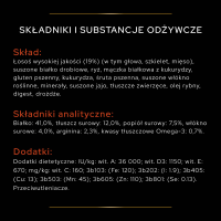 Produkt ten pozwala utrzymać prawidłową masę i kondycję. Zawartość białka została podwyższona, a węglowodanów obniżona. Wpływa to korzystnie na przemiany glukozy w organizmie i zabezpiecza kota przed ryzykiem wystąpienia cukrzycy.