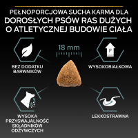 Jeśli Twój dorosły pies dużej rasy ma atletyczną budowę ciała i wrażliwy przewód pokarmowy, wypróbuj Purina PRO PLAN Large Athletic Adult z formułą OPTIDIGEST.