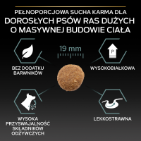 Purina PRO PLAN Large Robust Adult z formułą OPTIDIGEST to pełnoporcjowa karma dla dorosłych psów dużych ras o masywnej budowie ciała i wrażliwym przewodzie pokarmowym. OPTIDIGEST to specjalna kombinacja witamin i składników mineralnych dodanych do karmy suchej dla psów dużych ras, by spełnić ich specjalne potrzeby i pomóc im pozostać w dobrej kondycji. Karma o smaku jagnięciny z ryżem.