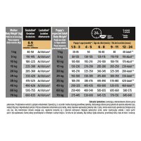 | Waga (kg) | 1.5-3 miesiące | 4-5 miesięcy | 6-8 miesięcy | 9-12 miesięcy | 12-24 miesięcy |