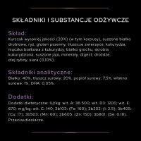 Pro Plan Original Kitten, kurczak to zbilansowana karma dla kociąt (1 do 12 miesięcy) oraz dla karmiących i ciężarnych kotek. W pierwszym roku życia u kocięcia rozwijają się naturalne systemy ochronne, które będą chronić jego zdrowie przez całe życie. Układ odpornościowy jest fundamentem tych systemów. Twoje kocię "buduje" skomplikowany system ochronny, który chroni całe ciało. Zapewnia ochronę układu pokarmowego, skóry i sierści oraz układu moczowego. Aby się tak dobrze rozwinąć w pierwszym roku życia, młody kot potrzebuje zbilansowanej ilości składników odżywczych, zestawionych w specjalny sposób, aby wspierać najważniejsze systemy ochronne organizmu. Dlatego Pro Plan Original Kitten, kurczak zapewnia kociętom wszystkie niezbędne do życia składniki odżywcze, aby Twój ulubieniec mógł się prawidłowo rozwijać i cieszyć się długim i zdrowym życiem. Karma o smaku kurczaka z ryżem.