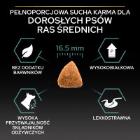 Purina Pro Plan Sensitive Digestion Medium Adult to kompletna karma sucha dla psów ras średnich, opracowana z myślą o zwierzętach z wrażliwym układem pokarmowym. Zawiera jagnięcinę jako główny składnik białkowy, która jest lekkostrawna i delikatna dla żołądka.