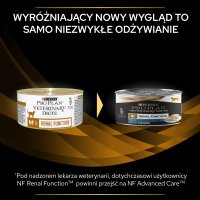 PURINA Veterinary Diets NF Renal Function to karma mokra dietetyczna dla kotów, wspomagająca pracę nerek w przebiegu przewlekłej niewydolności. Posiada niski poziom fosforu oraz ograniczoną ilość białka, ale o wysokiej jakości.