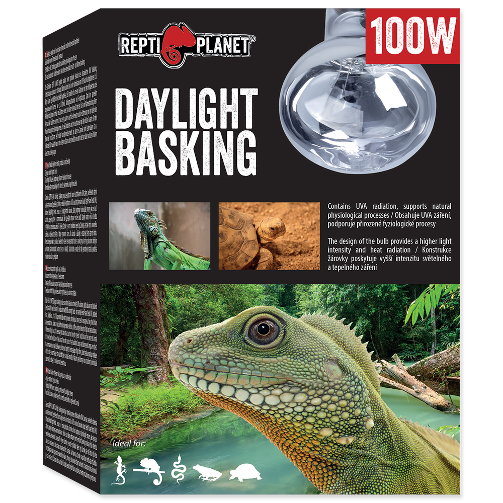 Żarówka REPTI PLANET Daylight Basking zapewnia optymalny balans promieniowania ultrafioletowego UVA, promieniowania świetlnego i promieniowania podczerwonego (ciepła) znakomicie sprawdza się w kombinacji z żarówkami UVB i żarówkami nocnymi.