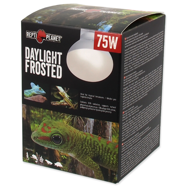 Żarówka REPTI PLANET Daylight Frosted zapewnia optymalny balans promieniowania ultrafioletowego UVA, promieniowania świetlnego i promieniowania podczerwonego (ciepła) znakomicie sprawdza się w kombinacji z żarówkami UVB i żarówkami nocnymi.