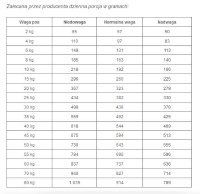| Masa ciała psa (kg) | gramy | kubki | gramy | kubki | gramy | kubki |