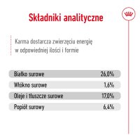 U psów ras dużych około 5 roku życia można zauważyć pierwsze oznaki starzenia. Dlatego, tak ważne jest, aby pamiętać, że na każdym etapie życia psa odpowiednia dieta jest kluczem do utrzymania dobrego zdrowia. Karma ROYAL CANIN Maxi Adult 5+ została opracowana specjalnie dla psów ras dużych (26 - 44 kg), powyżej 5 roku życia. Psy ras dużych powyżej 5 roku życia są narażone na przyrost masy ciała, dlatego należy monitorować dzienne spożycie kalorii przez psa.
