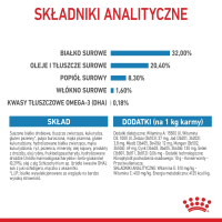 Unikalna kompozycja składników pokarmowych w postaci wysokiej jakości białka (L.I.P.*) i prebiotyków (FOS), aby wspomóc prawidłowe funkcjonowanie układu pokarmowego i równowagę flory bakteryjnej, co ma korzystny wpływ na jakość odchodów.