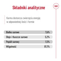 Mokra karma dla psa ROYAL CANIN Mini Adult sprawia, że każdego dnia Twój pies dostaje pokarm nie tylko smaczny, ale i wartościowy. Mięsne kawałki w aromatycznym sosie są prawdziwym przysmakiem, które zadowoloną nawet najbardziej wybredne podniebienie. Cenne nienasycone kwasy tłuszczowe wspierają metabolizm i wpływają na dobry stan skóry oraz gęstą, błyszczącą sierść. Karma jest lekkostrawna i zawiera odpowiednią ilość błonnika, dzięki czemu pozytywnie wpływa na pracę układu pokarmowego.