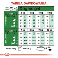 Karma ROYAL CANIN Mini Adult 8+ została opracowana dla psów ras małych, o masie ciała do 10 kg, powyżej 8 roku życia. Receptura karmy jest odpowiedzią na potrzeby żywieniowe psów ras małych. Karma zawiera odpowiedni poziom składników pokarmowych sprzyjających utrzymaniu witalności psów ras małych, u których zauważalne są pierwsze oznaki starzenia. Niektóre psy ras małych charakteryzują się wybrednym apetytem. Dlatego karma ROYAL CANIN Mini Adult 8+ zawiera unikalną kombinację naturalnych substancji aromatycznych.