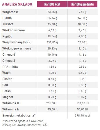 - Popiół surowy: 4,0%