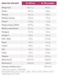 - Niezbędne, nienasycone kwasy tłuszczowe (kwas linolowy, kwas arachidonowy) 1,54%