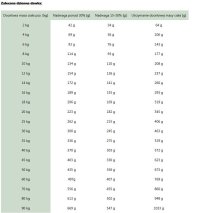 | Docelowa masa ciała psa (kg) | Początkowo | Po 4 tygodniach (jeśli zwierze nie osiągnęło docelowej masy ciała) | Utrzymanie docelowej masy ciała |