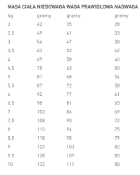 | Masa ciała | Prawidłowa waga | Nadwaga |
