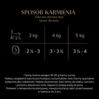 Kot o masie ciała 3 kg potrzebuje 1½ tacki i 15 g karmy suchej dziennie.