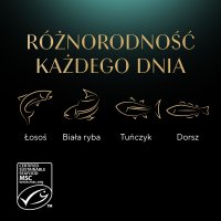 Cztery warianty smakowe: łosoś, biała ryba, tuńczyk, dorsz.