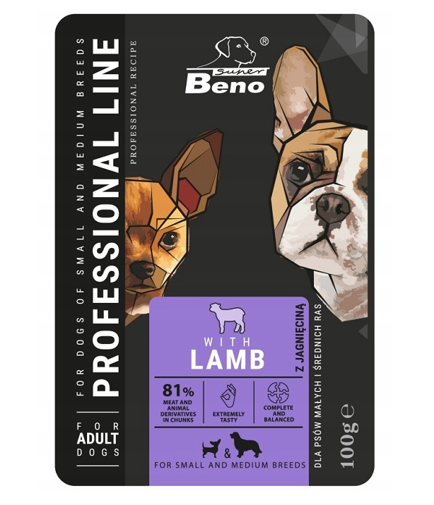 Super Beno Adult z jagnięciną to wysokiej jakości karma mokra dla dorosłych psów, która łączy wyjątkowy smak jagnięciny z cennymi składnikami odżywczymi, takimi jak błonnik, witaminy i minerały. Formuła bogata w wapń i fosfor wspiera mocne kości i zdrowie psa. Dzięki 81% zawartości mięsa, w tym jagnięciny (4%), karma oferuje doskonałą wartość odżywczą i smakową. Jest idealna dla psów średnich i małych ras, zapewniając im codzienną dawkę energii i satysfakcji.