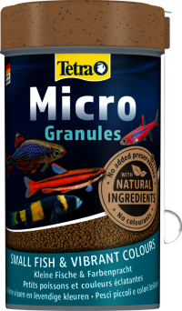 Tetra Micro Granules to karma podstawowa dla wszystkich ryb ozdobnych o małym pyszczku. Granulki mają szczególnie małą średnicę 0,3–1 mm, zawierają wysokiej jakości składniki odżywcze i wyróżniają się zbilansowaną kompozycją składników roślinnych i zwierzęcych. Czerwony pokarm zawiera karotenoidy zapewniające intensywny kolor, z kolei zielony pokarm ze składnikami ziołowymi przyczynia się do poprawy zdrowia i witalności. Małe granulki Tetra Micro Granules są idealne dla małych ryb, ponieważ szybko miękną w wodzie, dzięki czemu są łatwe do jedzenia. Podsumowując, Tetra Micro Granules to idealna karma podstawowa dla wszystkich małych ryb ozdobnych, a także młodych, rosnących pielęgnic i ryb morskich.