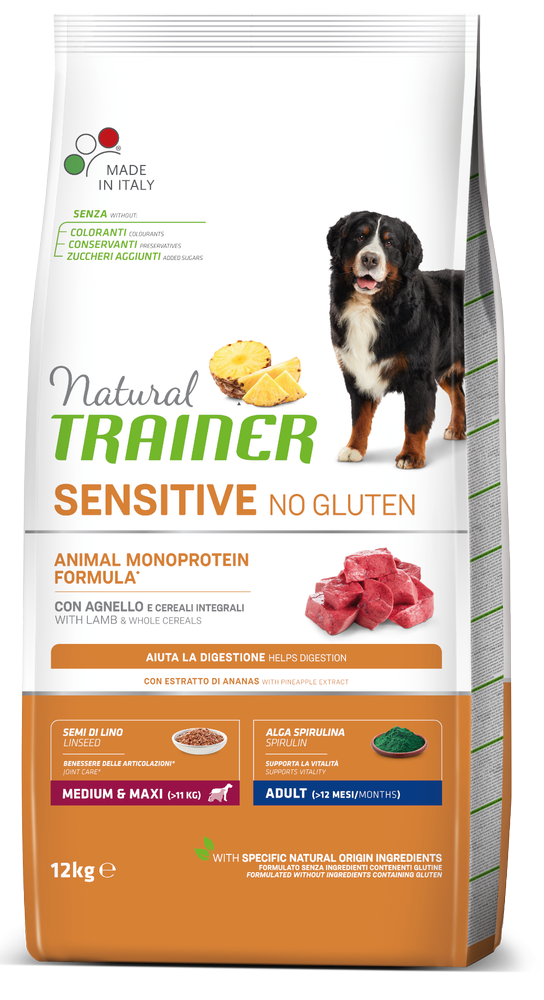 Trainer Natural Dog Sensitive No Gluten Adult Medium Maxi Agnello 12kg - Opis Produktu