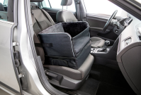Fotelik bezpieczeństwa dla psa wykonany z wysokiej jakości materiałów, bezpieczny i wygodny dla zwierzęcia. Kojec, który może służyć także jako legowisko podróżne.