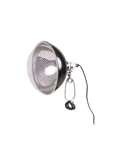 Reflektor z uchwytem zaciskowym. Odporny na wysokie temperatury, ceramiczna oprawa z kablem silikonowym. Wypolerowany reflektor efektywnie wzmacnia promieniowanie UV-B i pozwala na zwiększenie dystansu między zwierzęciem a lampą. Do użycia jako lampa z uchwytem zaciskowym, swobodnie zwisająca lub do mocowania na stale. Zamknięta konstrukcja zapobiega fizycznemu kontaktowi zwierzęcia z żarówka i eliminuje ryzyko oparzeń.