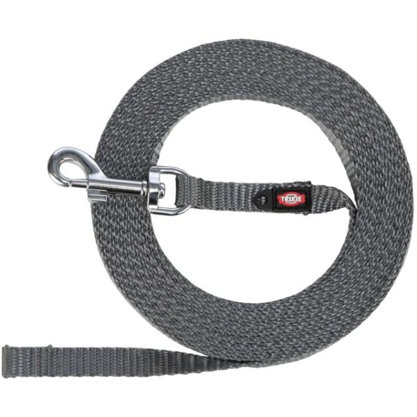 TRIXIE Smycz Treningowa Dla Małych Psów 5m, Taśma Parciana, Grafitowa to smycz stworzona z myślą o zapewnieniu psu dużej swobody ruchu, zachowując przy tym kontrolę. Jest wyjątkowo lekka, co sprawia, że jest wygodna zarówno do noszenia, jak i używania podczas spacerów i treningów. Wykonana z wytrzymałej taśmy, odpornej na uszkodzenia i łatwej w utrzymaniu czystości. Idealna do kontrolowanego poruszania się psa na wolności.
