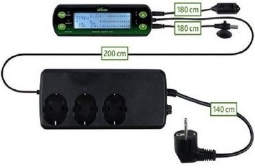 Termostat/Higrostat czasowy z trzema obwodami - osobnymi dla cyklu dziennego i nocnego. Idealny do użycia z generatorem mgły lub innym urządzeniem zapewniającym wilgotność. Pozwala na kontrolowanie temperatury źródła ciepła oraz kontroli wilgotności osobno dla dnia i nocy.