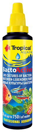 Ponadto szczepy bakterii zawarte w preparacie Bacto-Active wspomagają działanie bakterii nitryfikacyjnych. Dzięki ich pracy w nowych akwariach szybciej osiedlają się bakterie nitryfikacyjne i w krótszym czasie ustala się równowaga biologiczna. Po zastosowaniu Bacto-Active syndrom nowego akwarium nie jest już problemem. Bacto-Active przeznaczony jest do stosowania w nowych zbiornikach z uzdatnioną wodą wodociągową, w ustabilizowanych akwariach, po podmianie wody lub czyszczeniu filtra oraz po leczeniu ryb preparatami bakteriobójczymi.