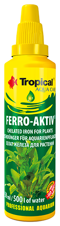 Przeznaczona do systematycznego uzupełniania żelaza w wodzie – pierwiastka, który wchodzi w skład chlorofilu (barwnika fotosyntetycznego roślin). Niedobory żelaza objawiają się chlorozą, liście stają się blade, na skutek zahamowania syntezy chlorofilu, pociąga to za sobą zaburzenia we wzroście roślin. Zalecamy używanie odżywki Ferro-Aktiv przynajmniej raz w tygodniu podczas podmiany wody w akwarium. Przy gęstej obsadzie roślin można stosować mniejsze dawki w krótszych okresach czasu. Stosowany regularnie Ferro-Aktiv zapewnia żywą, intensywną zieleń roślin wodnych oraz ich bujny wzrost.