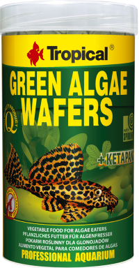 Green Algae Waffers to roślinny pokarm w postaci tonących wafelków z dodatkiem spiruliny, przeznaczony do codziennego karmienia tych gatunków ryb z rodziny Loricariidae, które w diecie wymagają znacznego udziału składników pochodzenia roślinnego i glonów, np. Sturisoma aureum, Pterygoplichthys pardalis, Panaque maccus itp.