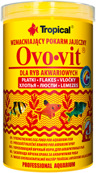 Ovo-Vit to pokarm, który uzupełnia dietę ryb o cenne białko, nienasycone kwasy tłuszczowe i dobrze przyswajalną lecytynę z żółtek jaj. Płatki Ovo-Vit wspomagają wzrost, dojrzewanie i przystępowanie ryb do tarła, dlatego są szczególnie polecane dla tarlaków oraz młodych, rosnących ryb, których zapotrzebowanie na składniki odżywcze jest szczególnie duże.