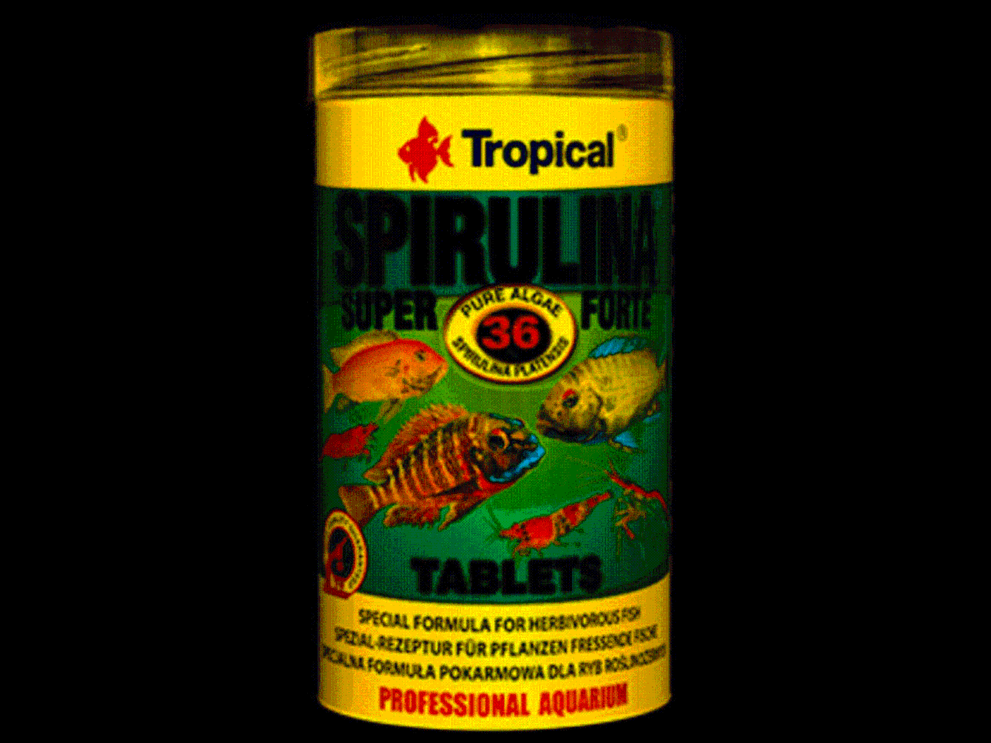 Przeznaczony dla glonożernych pielęgnic afrykańskich oraz innych ryb, w tym również morskich, wymagających w diecie znacznego udziału składników pochodzenia roślinnego. Spirulina pobudza system immunologiczny ryb i wpływa pozytywnie na procesy trawienia. Jest źródłem nienasyconych kwasów tłuszczowych, łatwo przyswajalnego białka bogatego w aminokwasy egzogenne oraz witamin i mikroelementów, które zapewniają rybom doskonałą kondycję, intensywny wzrost i witalność. Regularne stosowanie sprawia, że kolory ryb, dzięki zawartym w spirulinie karotenoidom (w tym beta-karotenowi), nabierają intensywności i blasku.