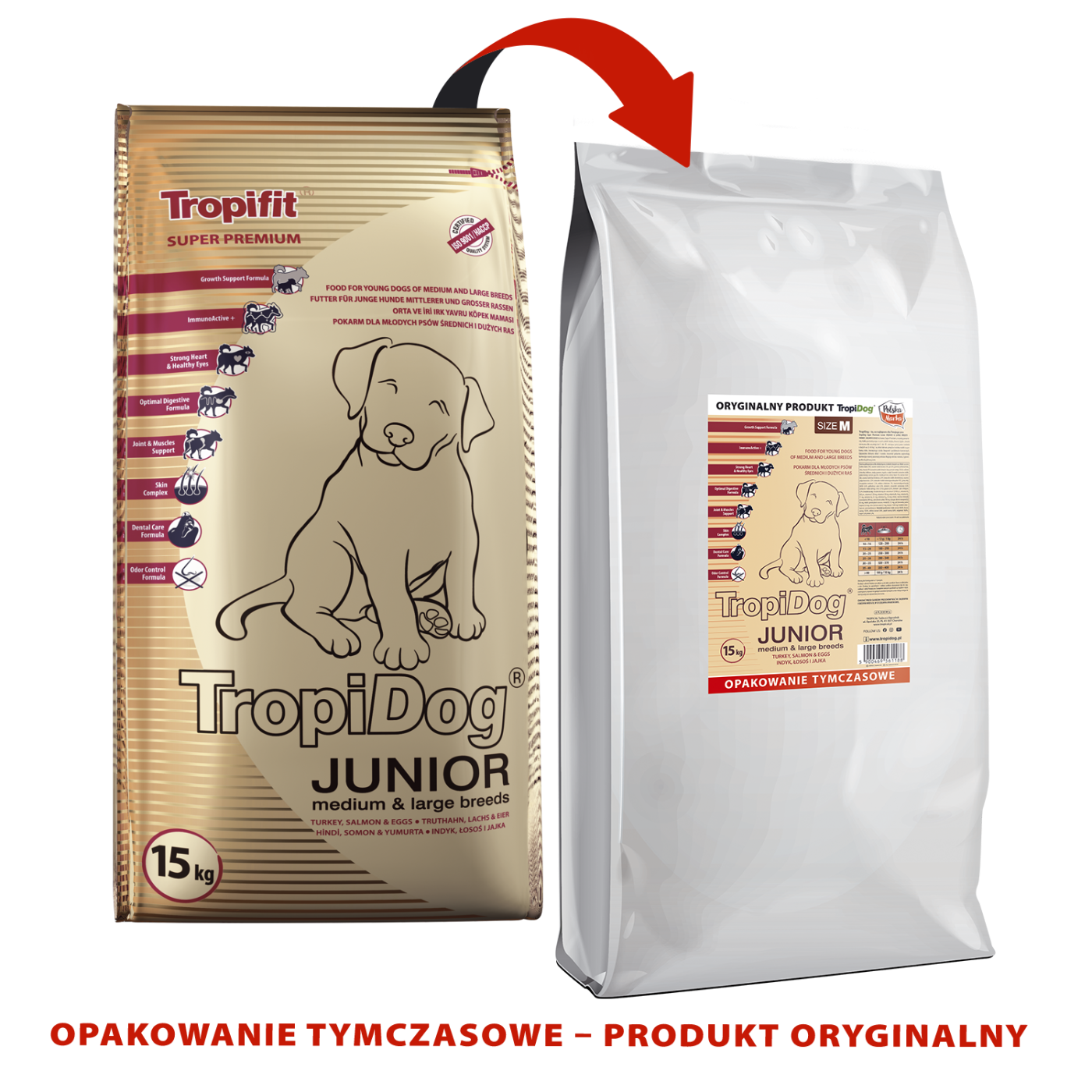Tropidog Super Premium Junior Medium & Large Breed Z Indykiem, Łososiem I Jajkami 15kg - Opis Produktu