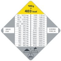 Wyższa zawartość błonnika pomaga kontrolować wagę psa. Specjalnie zaprojektowana, bardzo smaczna 12 mm granulka zapewnia łatwe pobieranie pokarmu.