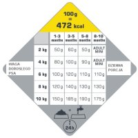 | Waga psa (kg)/Wiek (months) | 1-3 | 3-5 | 5-8 | 8-10 |