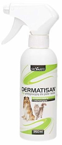 Składniki zawarte w preparacie wykazują działanie dezynfekujące skórę i sierść.