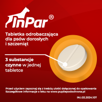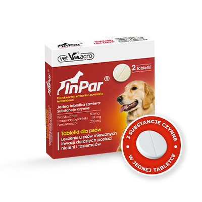 InPar - to tabletka odrobaczająca dla psów. Zawiera trzy substancje czynne: Prazykwantel, Embonian pyrantelu, Fenbendazol, które działają skutecznie na pasożyty wewnętrzne: nicienie (włosogłówki, glisty, tęgoryjce) i tasiemce.