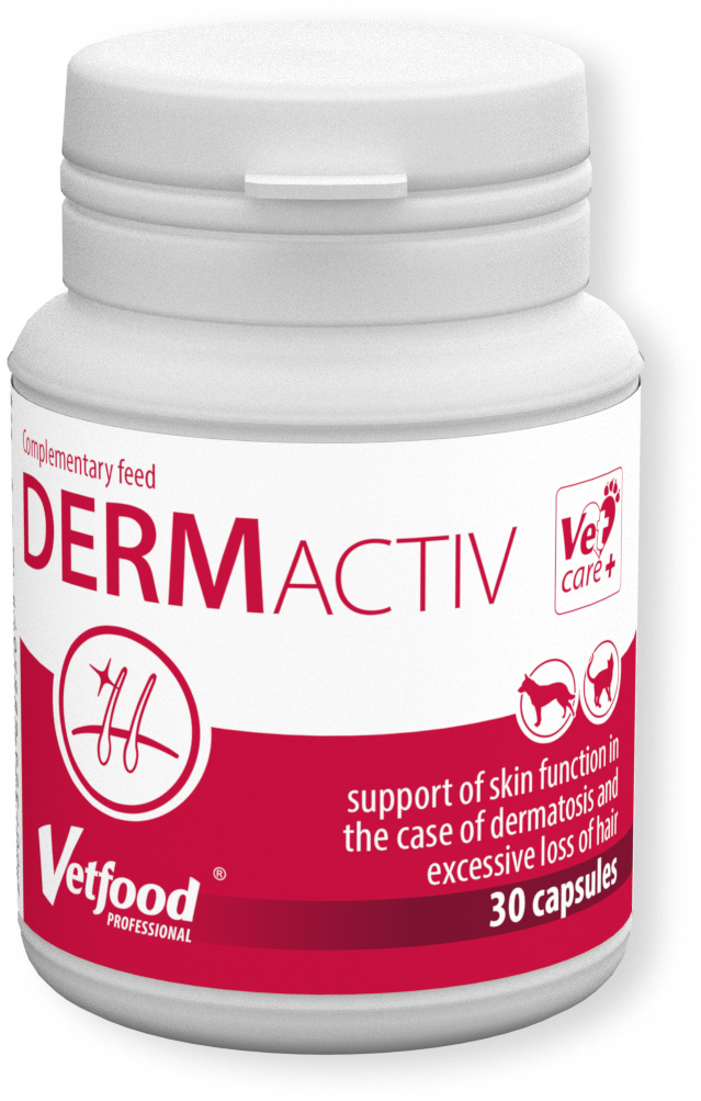 DERMActiv dla psów i kotów jest innowacyjnym produktem na rynku weterynaryjnym, który dzięki połączeniu wielu substancji o dobroczynnym działaniu wspomaga prawidłowe funkcjonowanie skóry i sierści oraz zapewnia jej zdrowy wygląd.