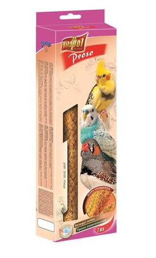 Kłosy prosa senegalskiego stanowiące smakowite uzupełnienie diety papug i innych ptaków. Ziarna zawierają witaminy grupy B, minerały takie jak: magnez, żelazo, jod, rozpuszczalną krzemionkę, oraz nienasycone kwasy tłuszczowe. Takie ziarno jest pożywniejsze, ma więcej witamin i pobudza ptaki do aktywności płciowej.
