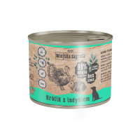 Podstawą posiłku jest zatem duet starannie wybranych mięs w aromatycznym bulionie mięsnym. Połączenie delikatnego i soczystego królika wraz z lekkostrawnym indykiem to świetny wybór dla każdego psa, nawet tego z wrażliwym żołądkiem.