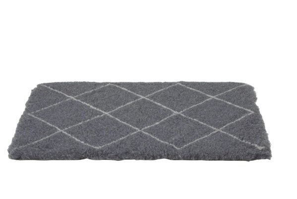 Jest to legowisko wyjątkowo odporne na drapanie i podgryzanie, co zapewnia jego długotrwałą trwałość. Spód pokryty lateksem sprawia, że posłanie jest antypoślizgowe, co dodaje stabilności i komfortu w każdej pozycji. Wzornictwo w modnym motywie berberyjskim w uniwersalnym grafitowym kolorze pasuje do każdego wnętrza, a posłanie świetnie sprawdzi się w transporterach, klatkach kennelowych, na tarasie, a także jako mata w domu.