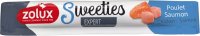Zolux Sweeties to delikatny, kremowy przysmak opracowany jako uzupełnienie codziennej diety psa. Dzięki wysokiej zawartości mięsa z kurczaka i łososia stanowi lekkostrawne źródło białka, które wspiera prawidłowy rozwój mięśni oraz kondycję organizmu. Smakołyk ma aksamitną konsystencję i naturalny aromat, który zachęca psy do jedzenia – także te wybredne lub mające problemy z apetytem.